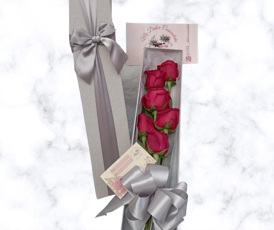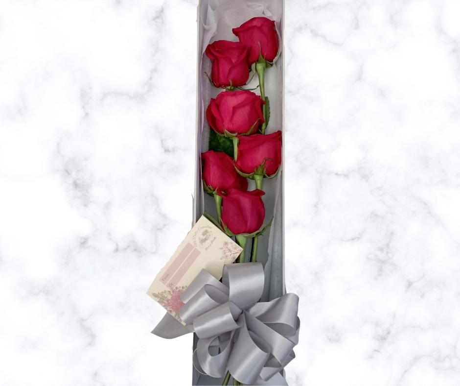 6 rosas ecuatorianas en caja de lujo para regalo.